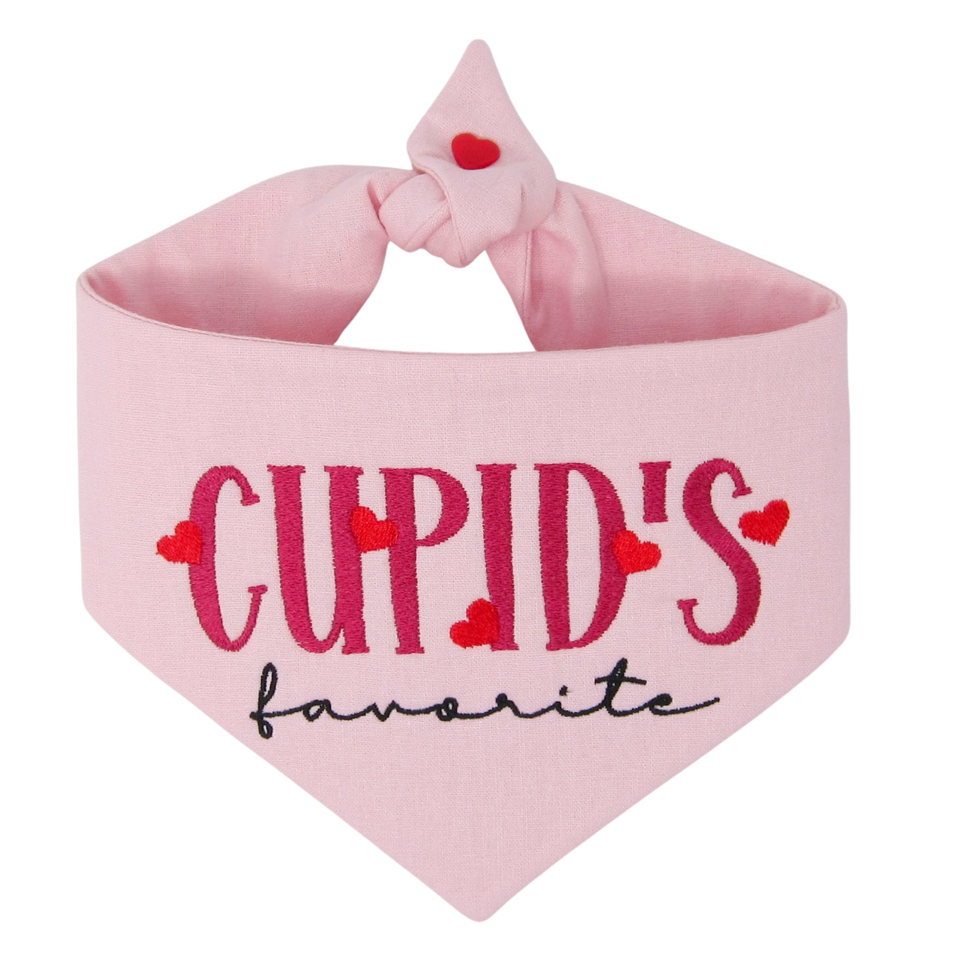 Celebrate love with your pup in this pale pink linen-blend bandana, featuring the sweet embroidered phrase "Cupid's Favorite". Whether you're snapping holiday photos or heading to a Valentine's Day celebration, your dog will steal hearts in style.