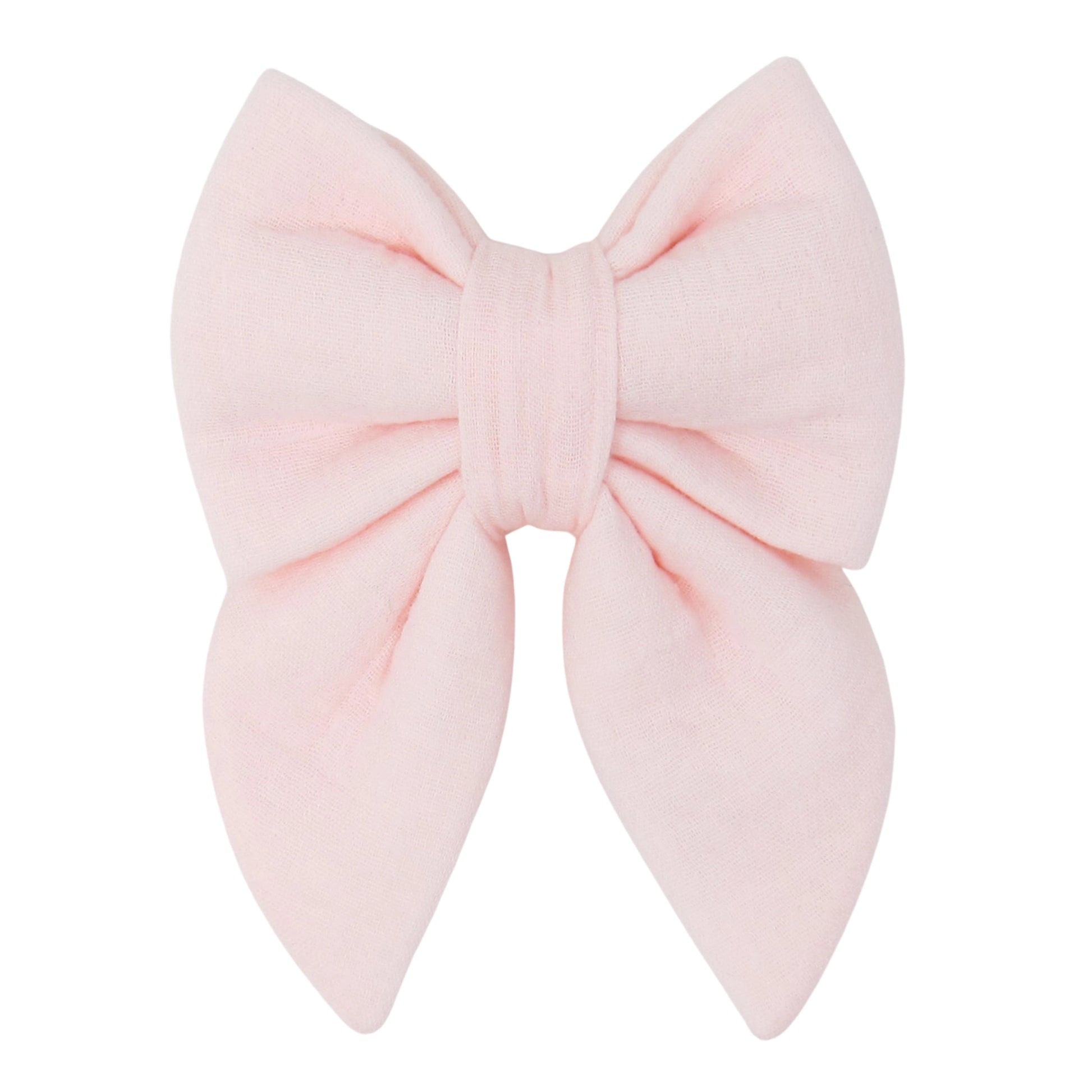 Dress up your pup for the season of love with this delicate pale pink gauze bow.