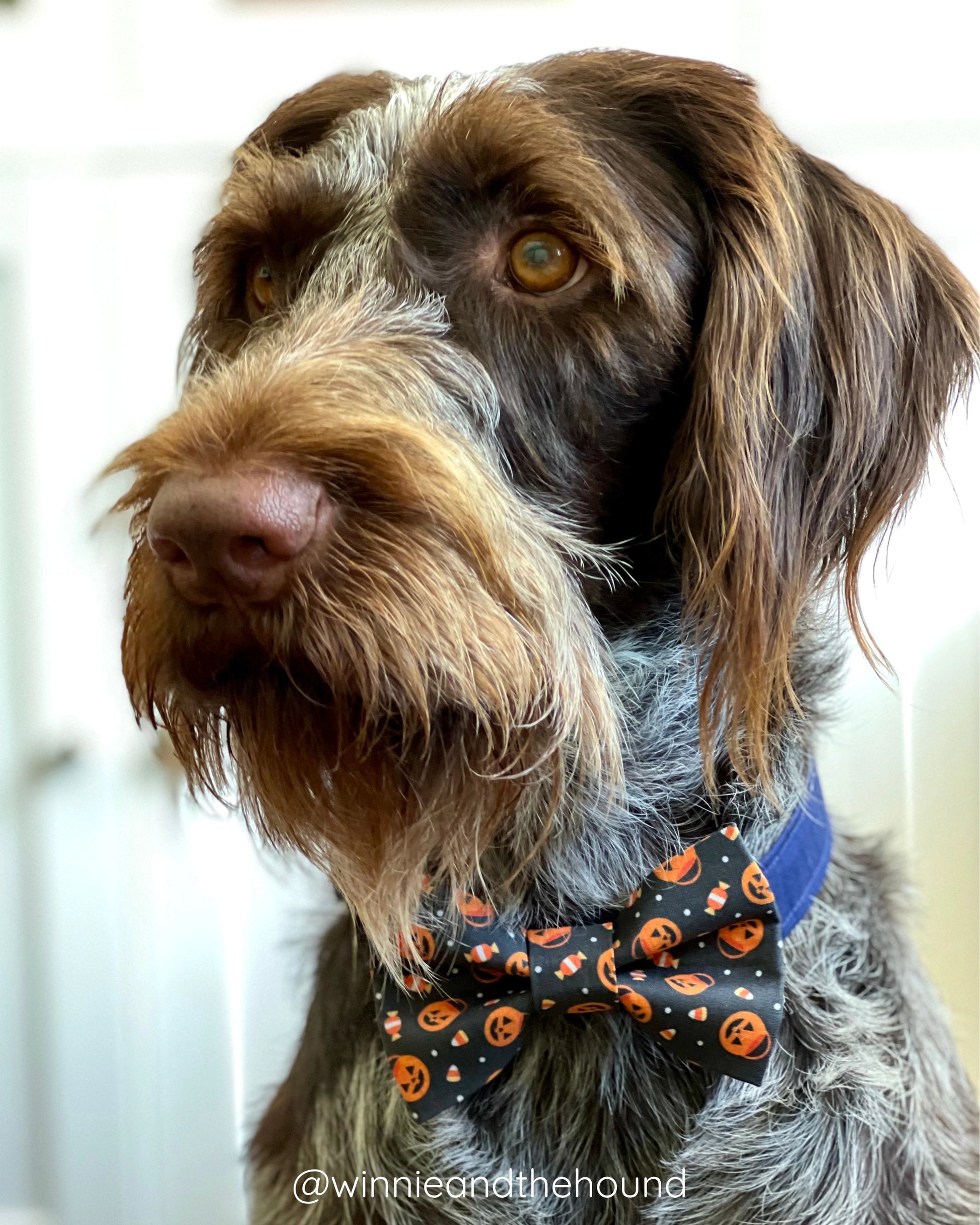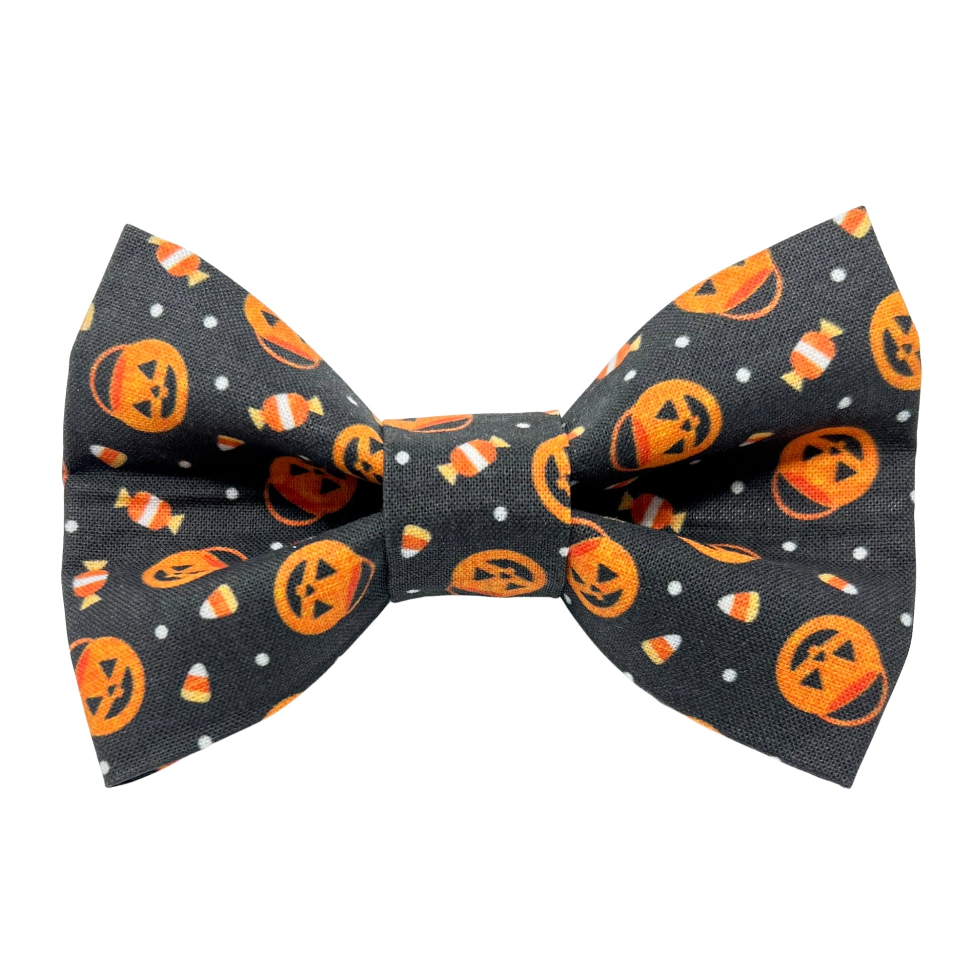Let your pup dress their best in our festive Halloween dog bow tie so they can get all the "treats" they deserve. This playful bow tie features a candy-themed print so your dog is Halloween-ready.