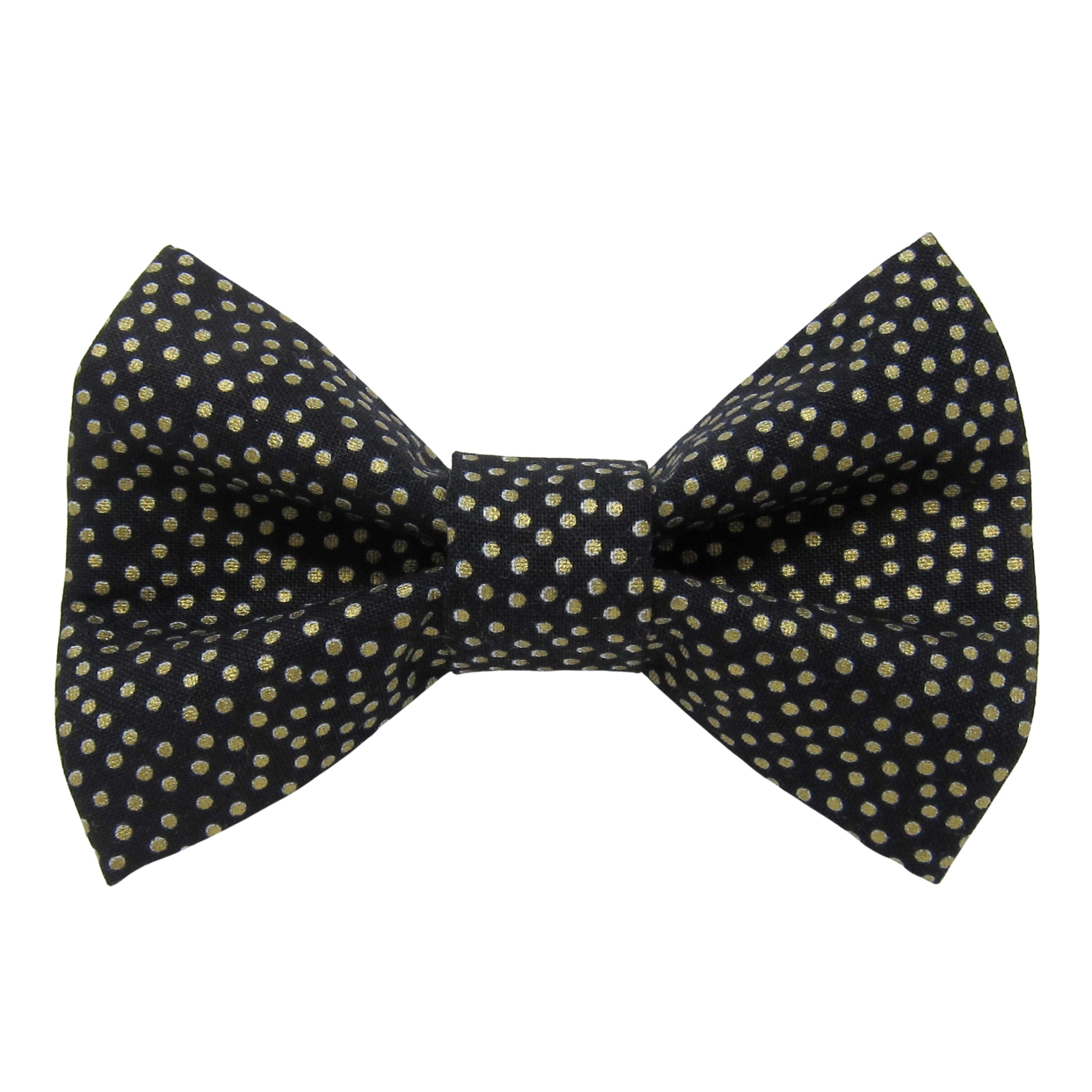 Introduce understated luxury to your dog's holiday collection with the Midnight Affair Dog Bow Tie. Crafted in deep black with shimmering metallic gold accents, this refined accessory strikes the perfect balance between classic style and festive charm.