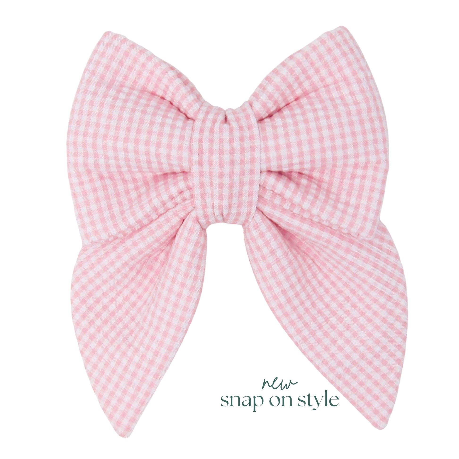 This seersucker lady bow features our new snap on style!
